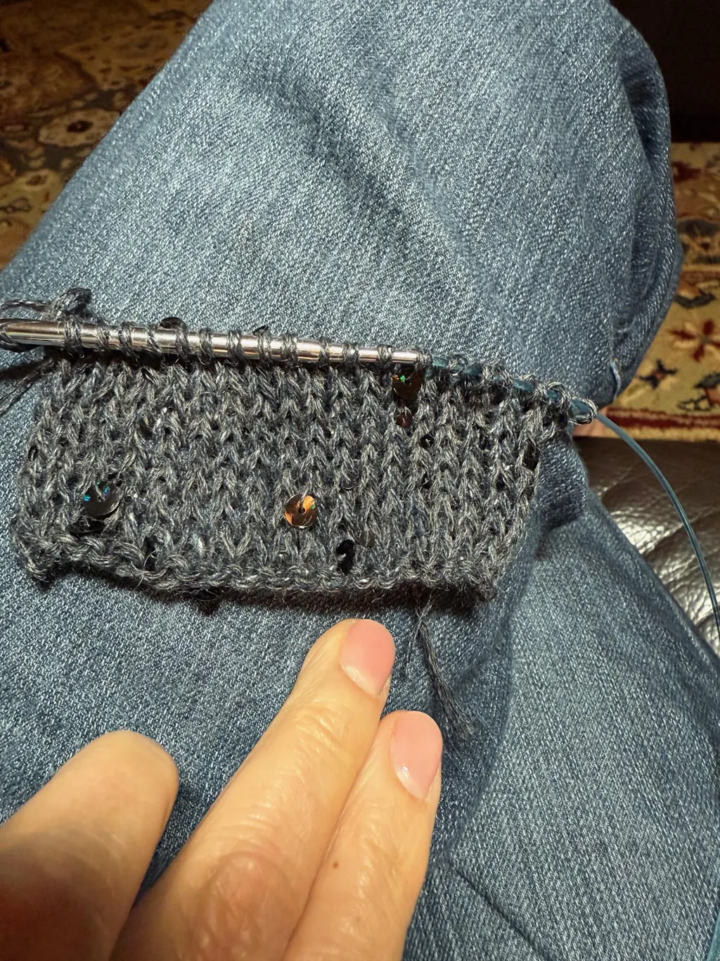 • Evite patrones de puntadas complejos: el punto jersey o los diseños simples resaltan mejor las lentejuelas.