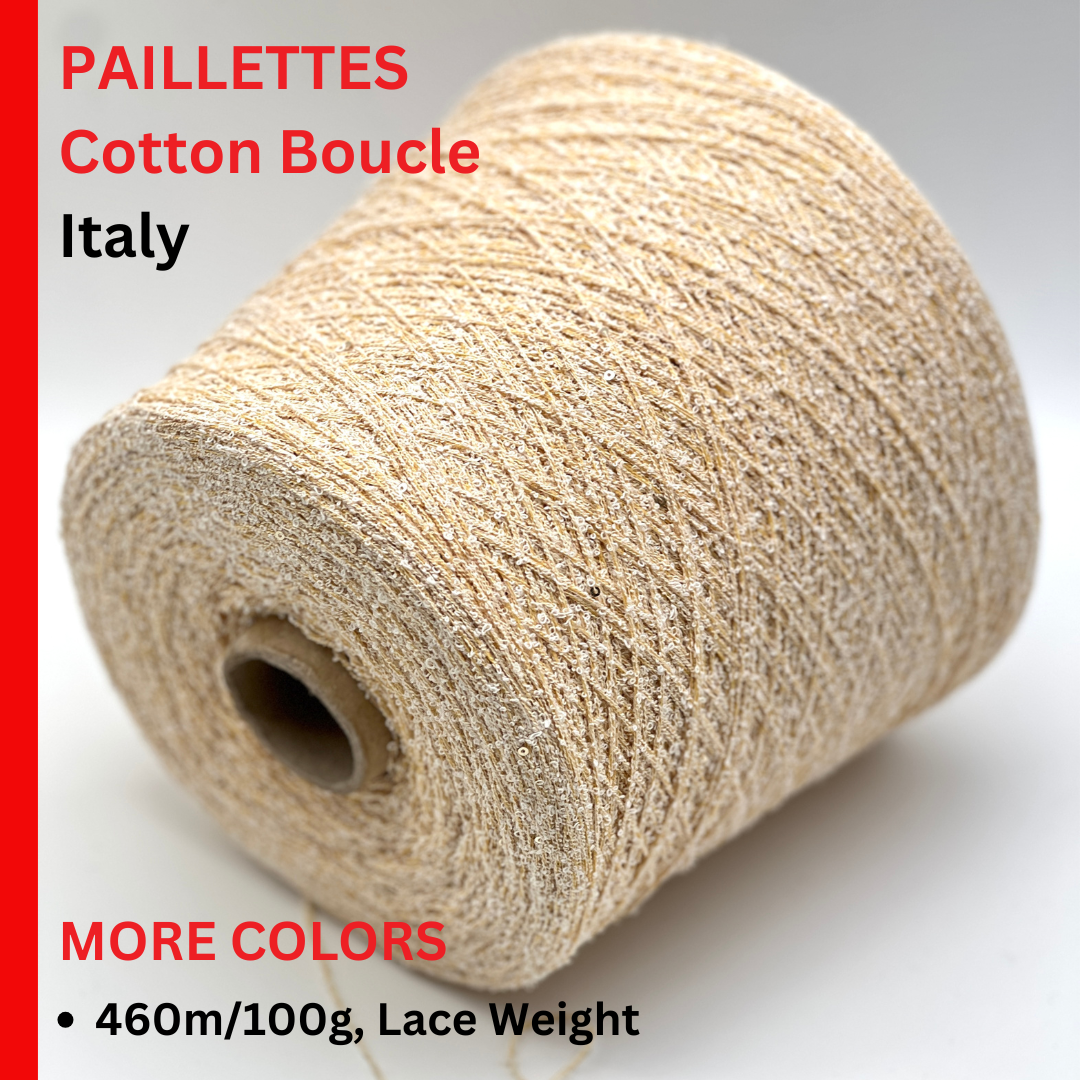 PAILLETTES Cotton BOUCLE Yarn, KIR, Premium Italian Yarn by Lanificio Dell'Olivo, Sold in Balls or on Cones, Lace Weight, 460m/100g (503y/3.52oz)