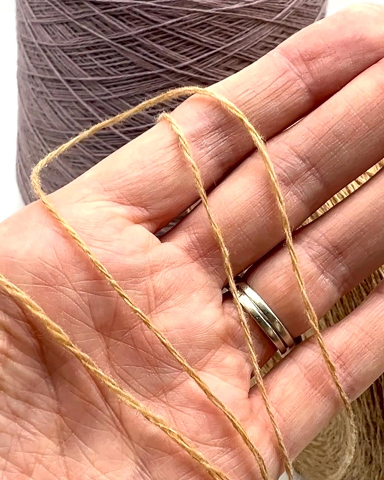 ⢠This yarn is spun to a 3/20 Nm count, giving you approximately 667m per 100g. It has more body than ultra-fine laceweight and is easier to handle as a single strand.