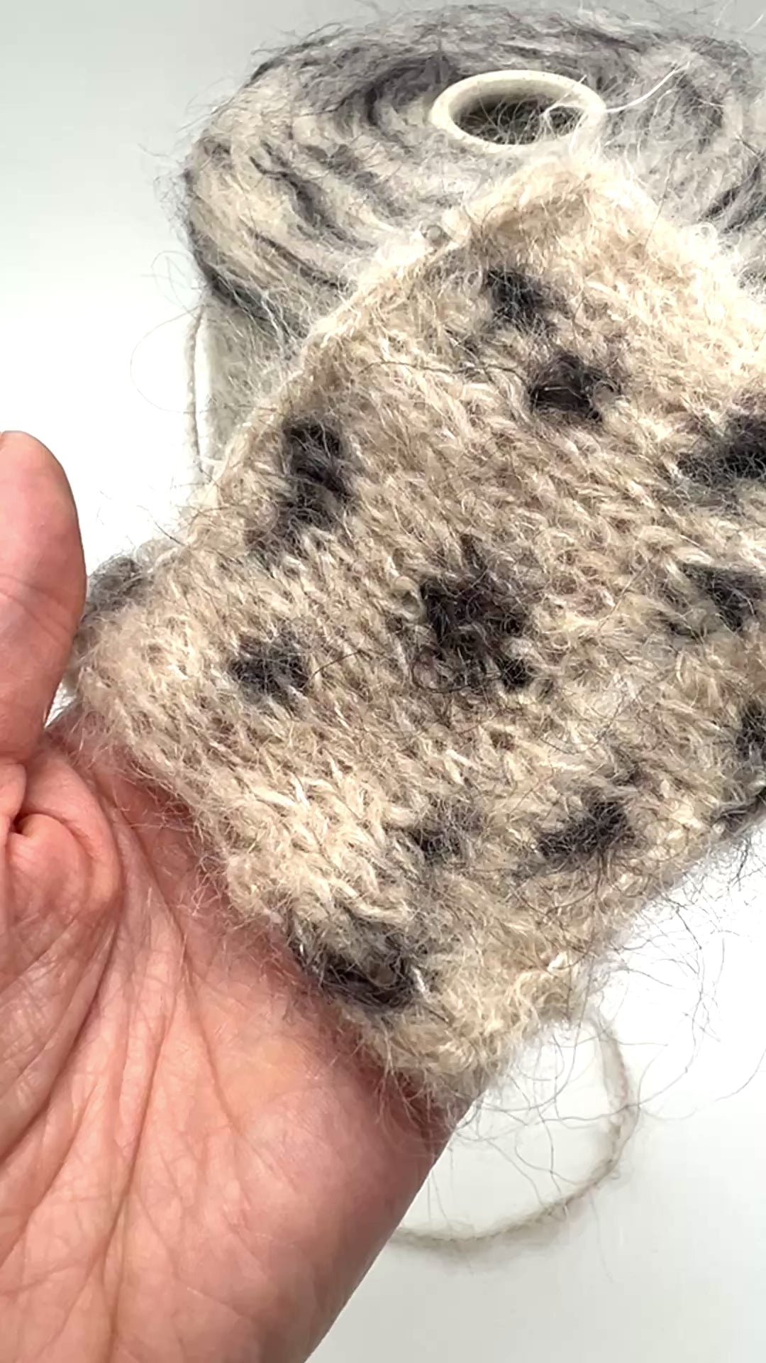 A unique Italian yarn with playful elegance ✨ – Made by Lineapiù Italia, SPOT is a sport-weight blend of merino wool, mohair, and polyamide. This yarn is incredibly soft, light, and creates an effortless animal-print or polka-dot effect as you knit. The beige base with black spots forms a stylish pattern on its own, giving your projects a modern and eye-catching look without the need for complex colorwork.