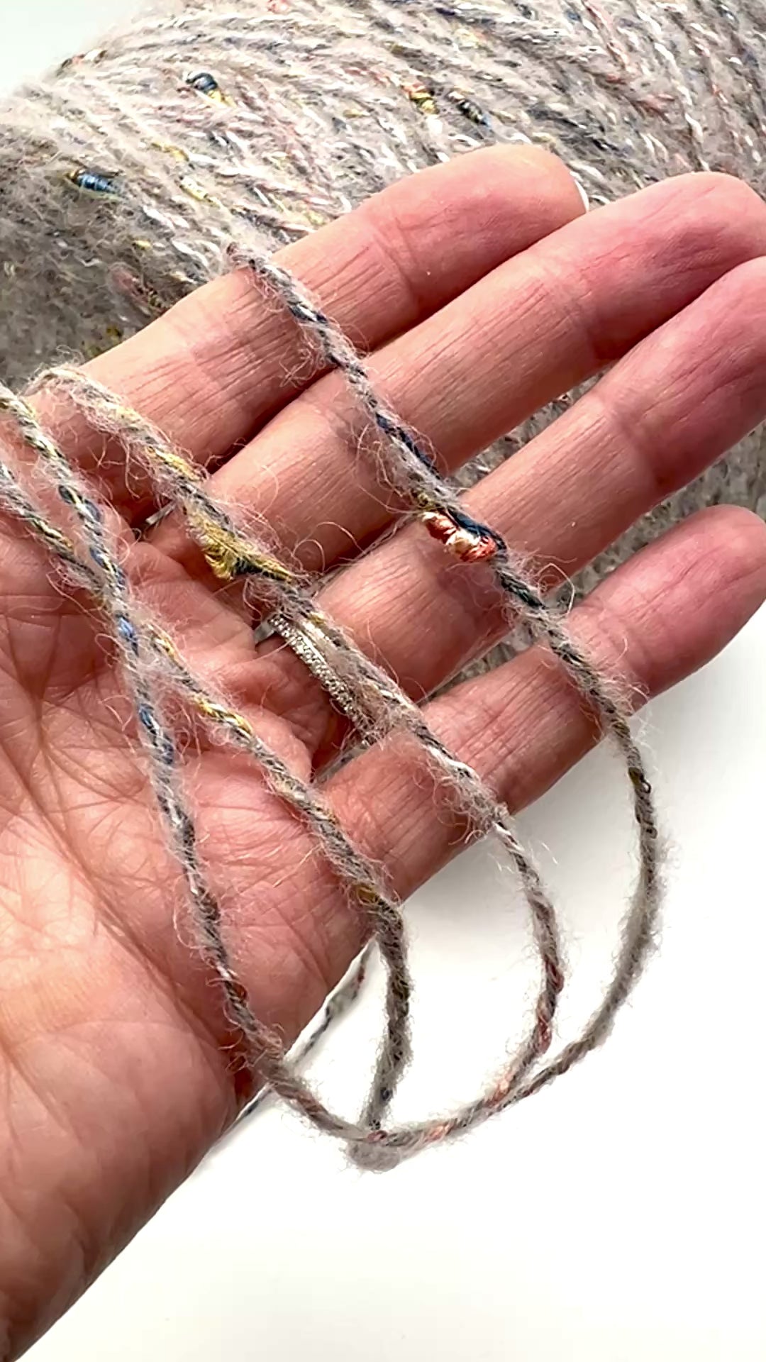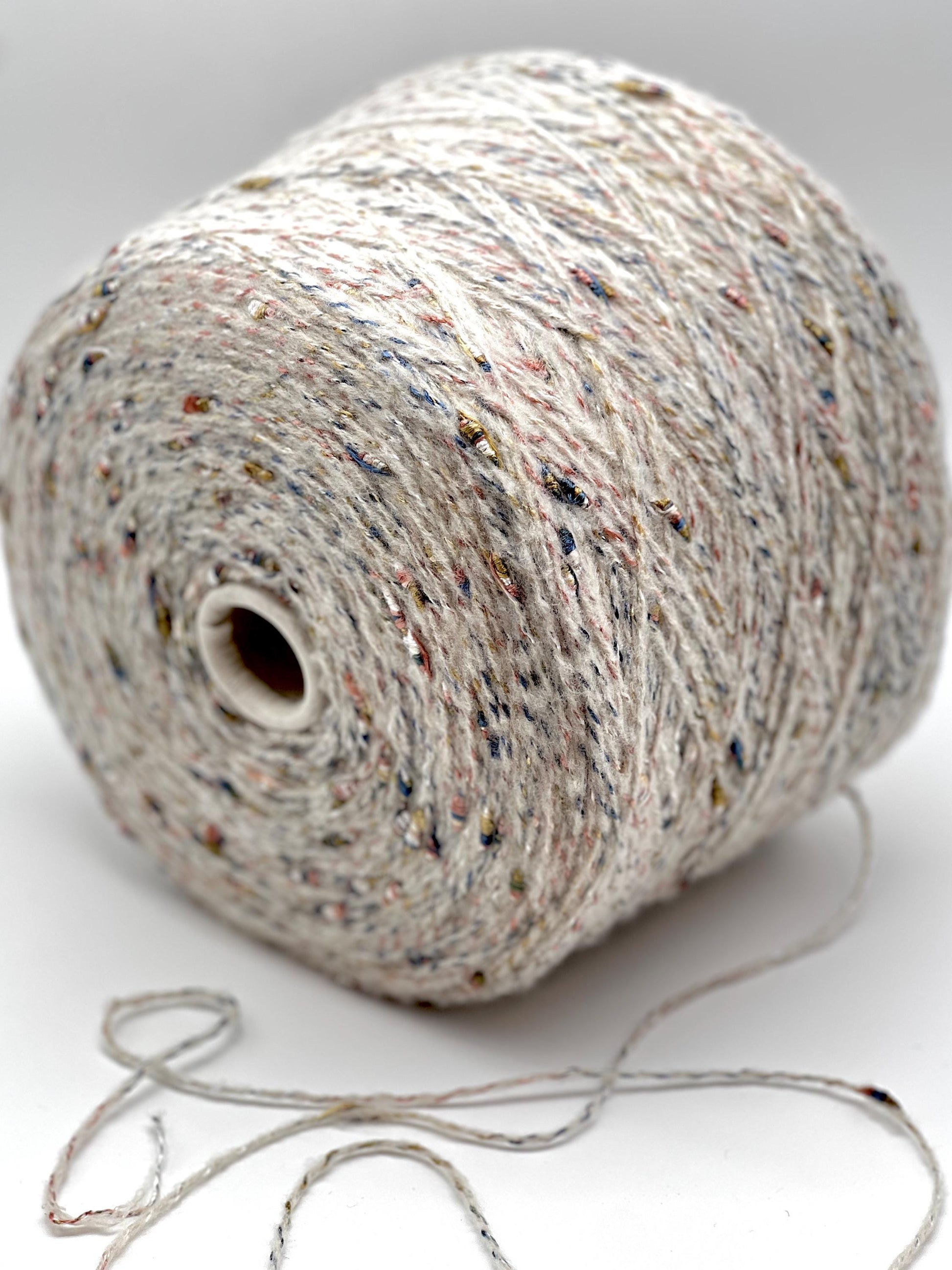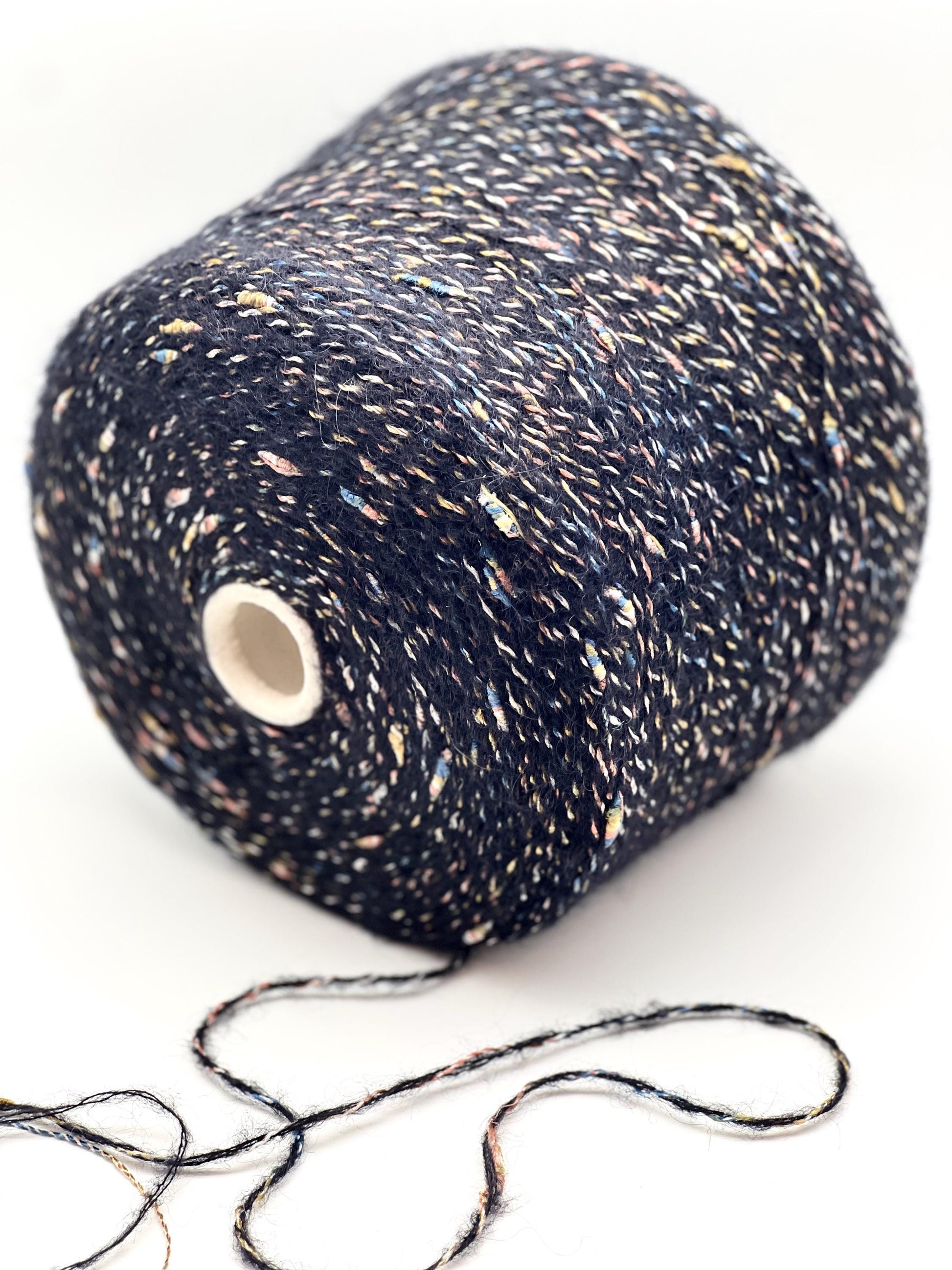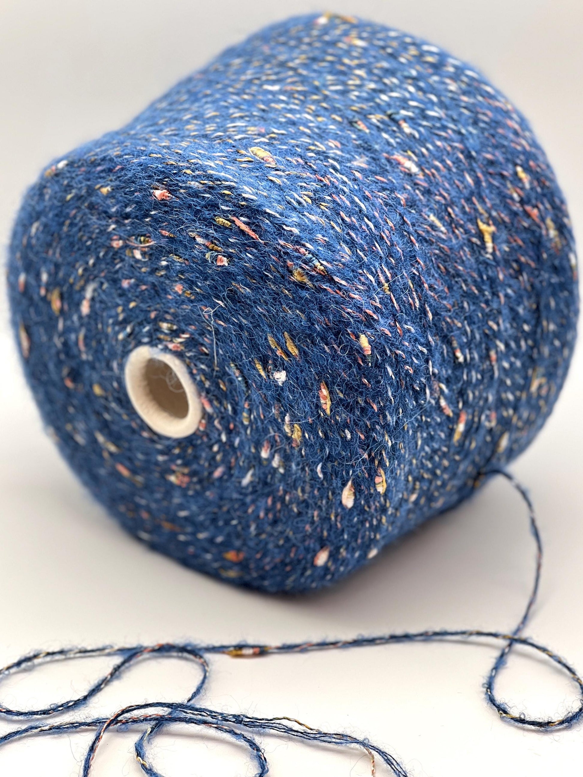 A rare luxury yarn with couture charm ✨ – TAURUS by RiGo, Italy, is a fluffy, soft base yarn spun from baby alpaca, wrapped with a multicolored shiny viscose thread, and accented with tiny boucle nubs (“shishibriki”). This aran-weight yarn offers a rich, textured surface and exceptional softness—perfect for Chanel-style knitwear or other statement pieces.
