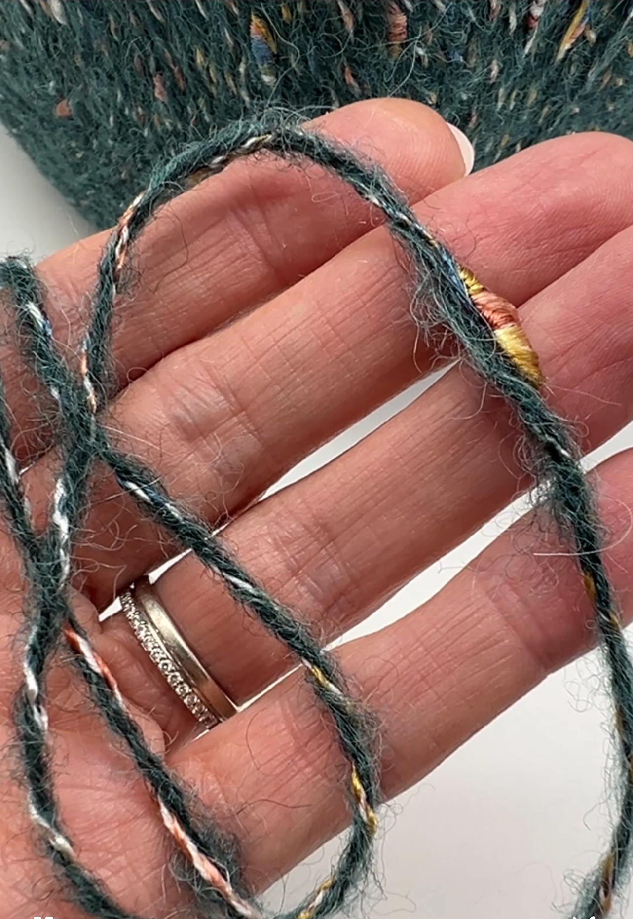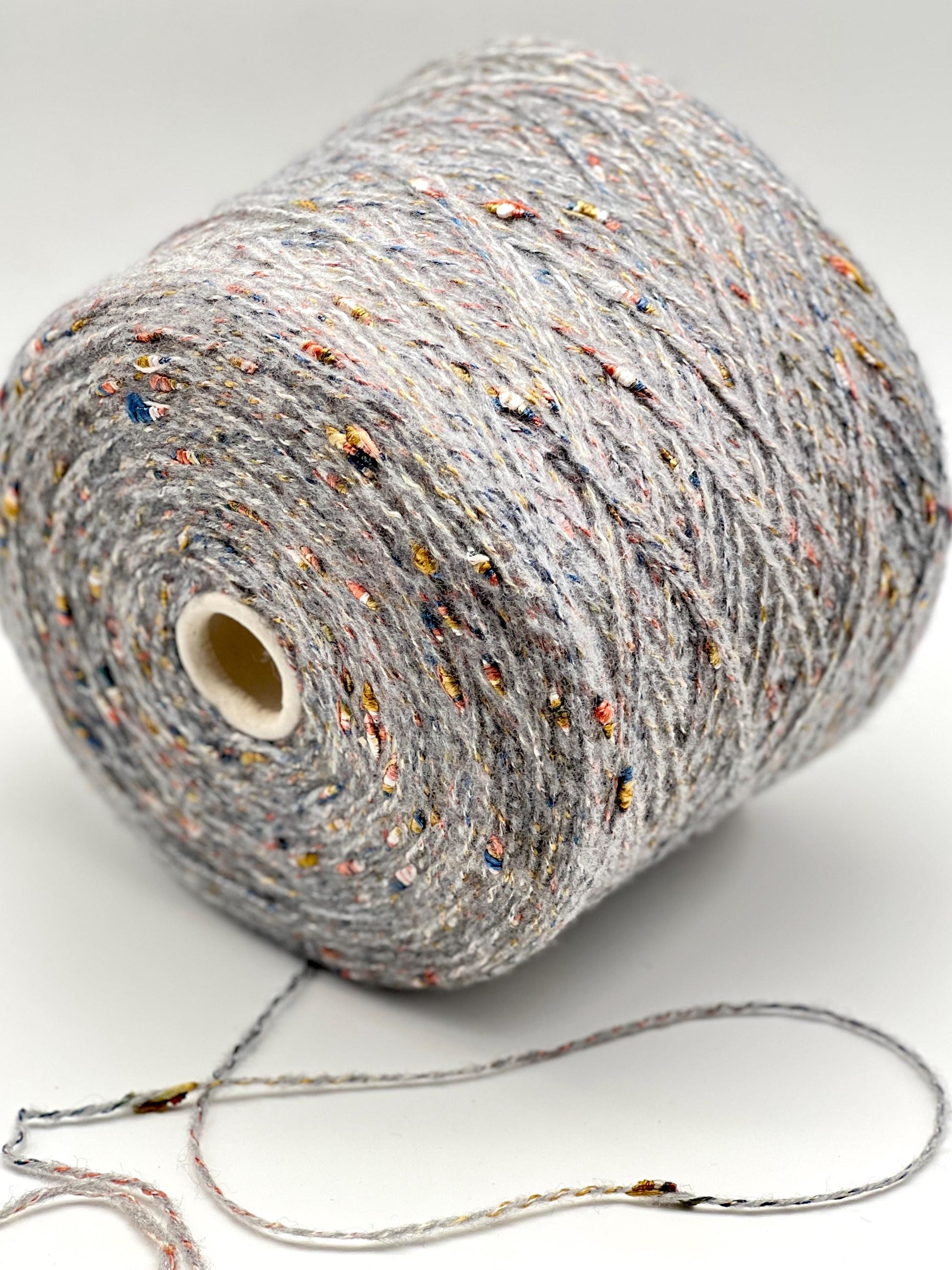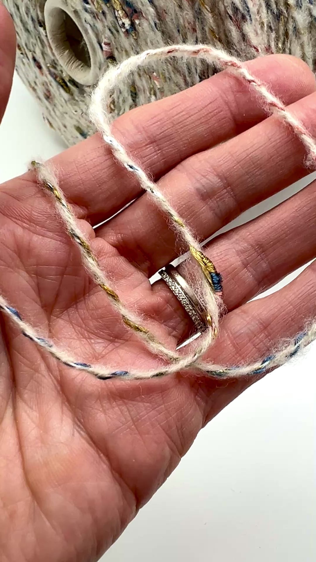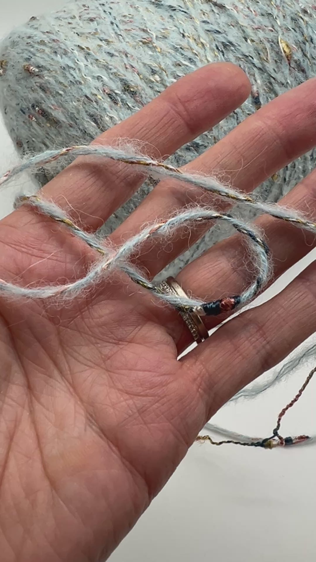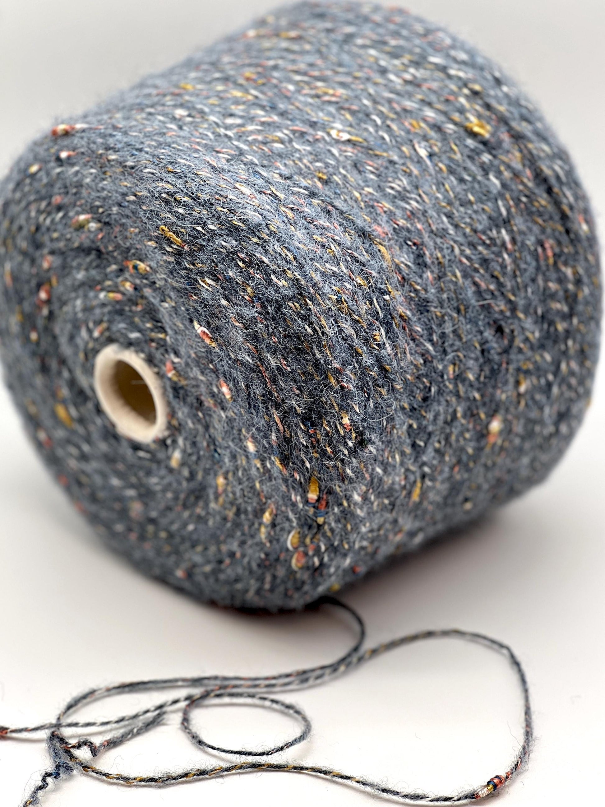 A rare luxury yarn with couture charm ✨ – TAURUS by RiGo, Italy, is a fluffy, soft base yarn spun from baby alpaca, wrapped with a multicolored shiny viscose thread, and accented with tiny boucle nubs (“shishibriki”). This aran-weight yarn offers a rich, textured surface and exceptional softness—perfect for Chanel-style knitwear or other statement pieces.