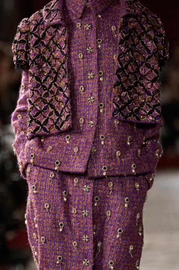Ideal for Chanel-style jackets, statement cardigans, textured sweaters, and accessories where a rich, eye-catching surface is desired.