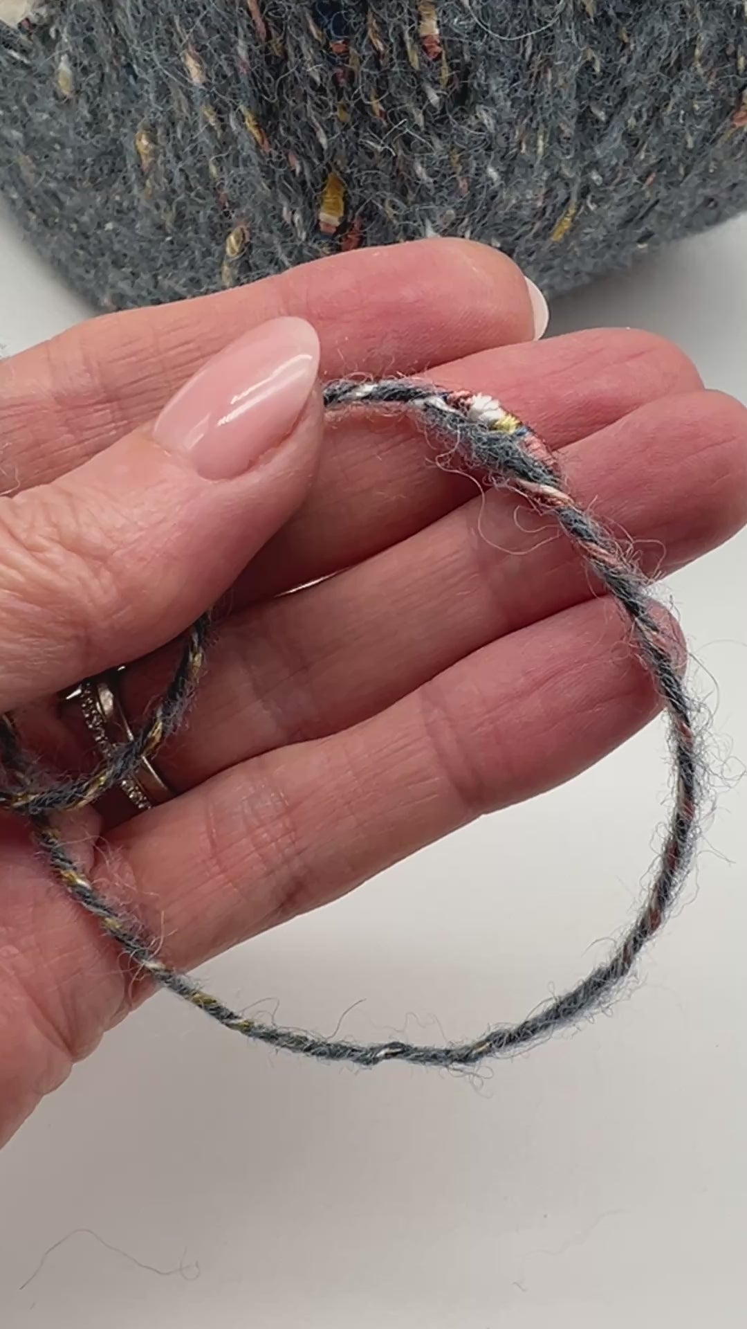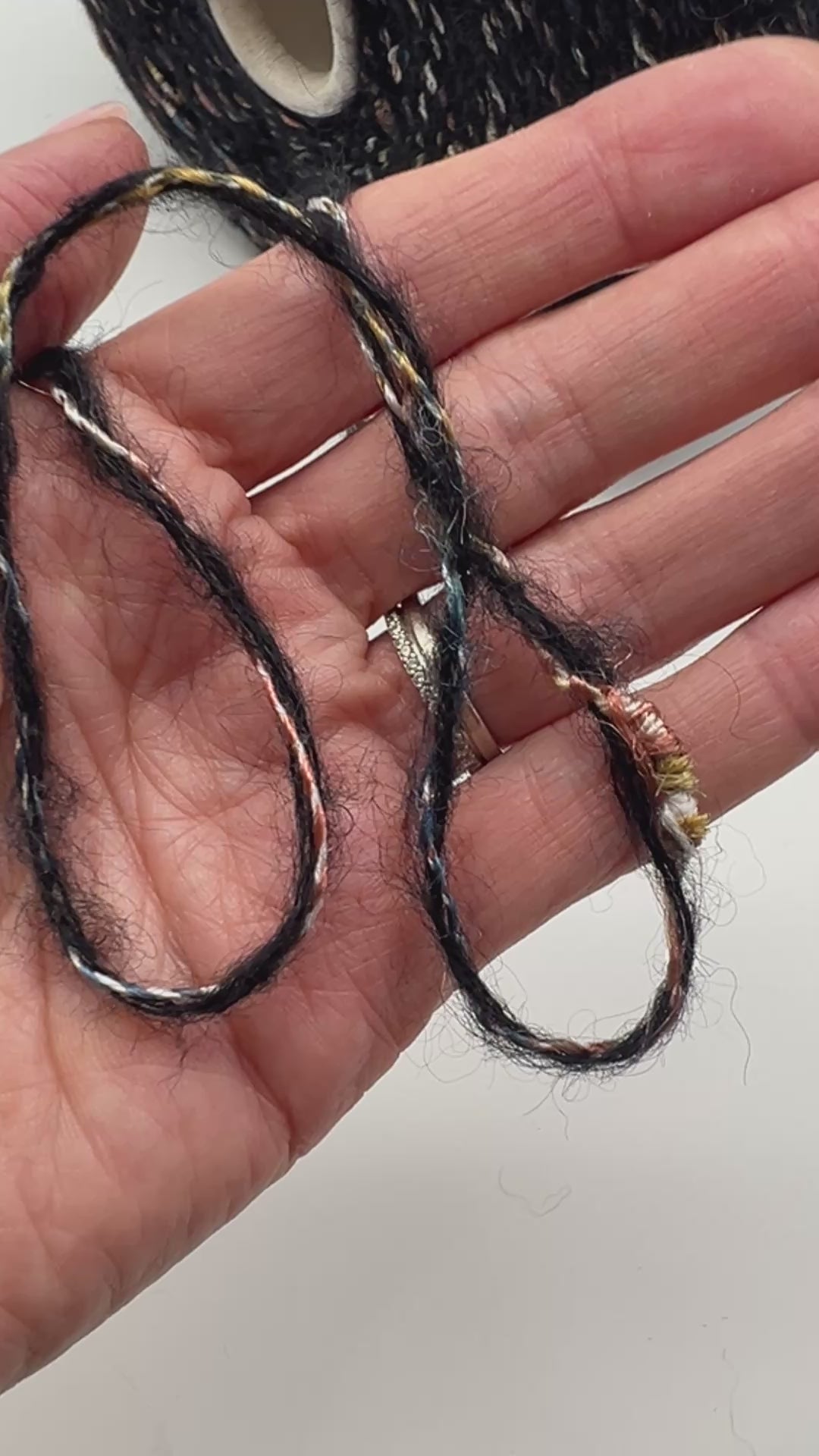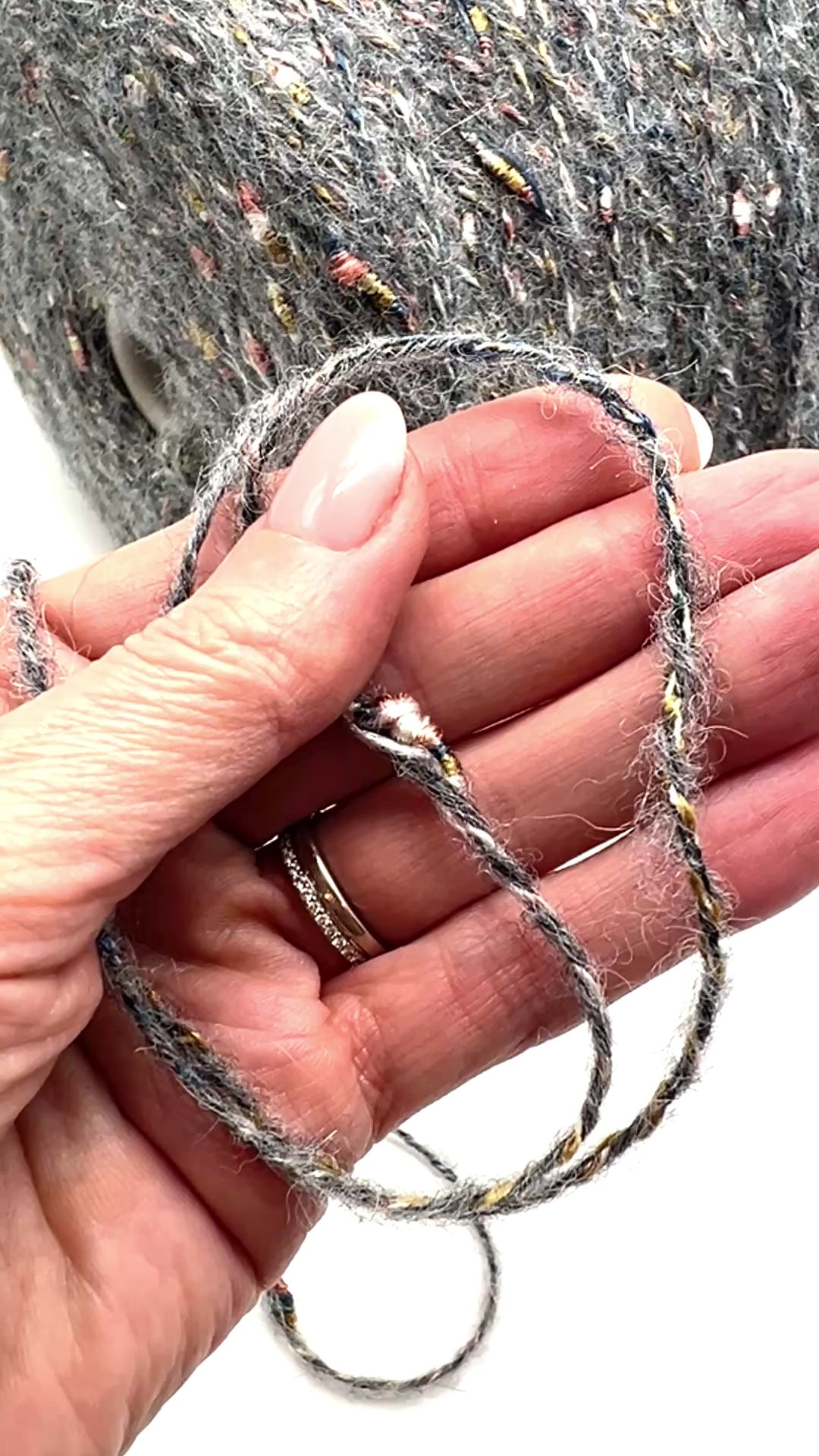 Because of its texture, this yarn works beautifully in simple stitch patterns that let the fibers and nubs shine. Combine with a solid yarn for structured edges or trims.