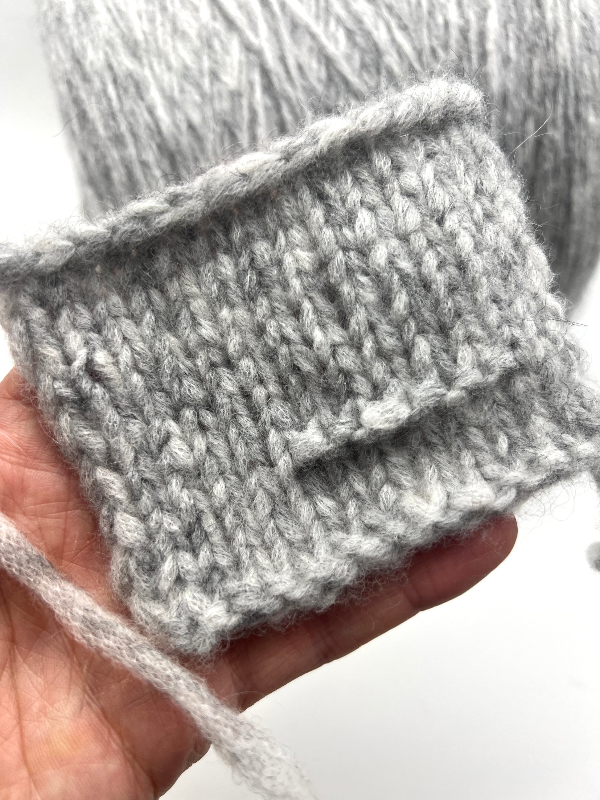 This sample was knit in just 2–3 minutes using U.S. size 6 needles. After washing, the fabric opened beautifully, revealing the yarn’s full softness and lightness. It knits effortlessly in a single strand and works up very quickly. Depending on your design, you may even use size 7 needles, though size 6 allows the yarn to bloom perfectly after washing. Exceptionally soft and lightweight, this yarn can be transformed into a cozy sweater in just 3–5 evenings—a truly delightful knitting experience.