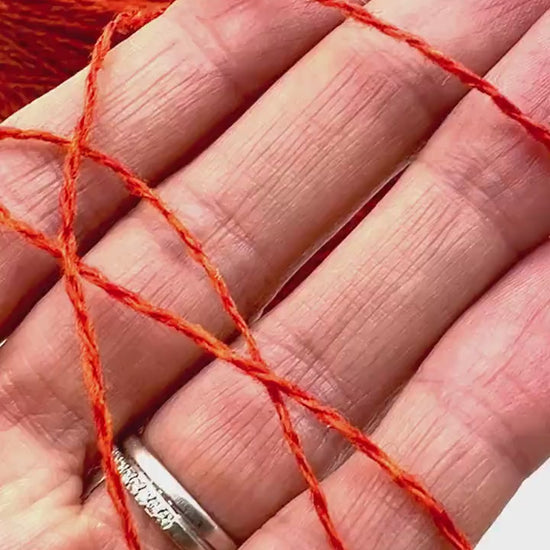 This 100% Cashmere is an exceptional choice for the weft in luxurious scarves, throws, and soft goods. Its lightness and ability to full after washing will create an incredibly warm and cozy fabric. It can also be used as a low-tension warp when paired with a strong cotton or silk thread.