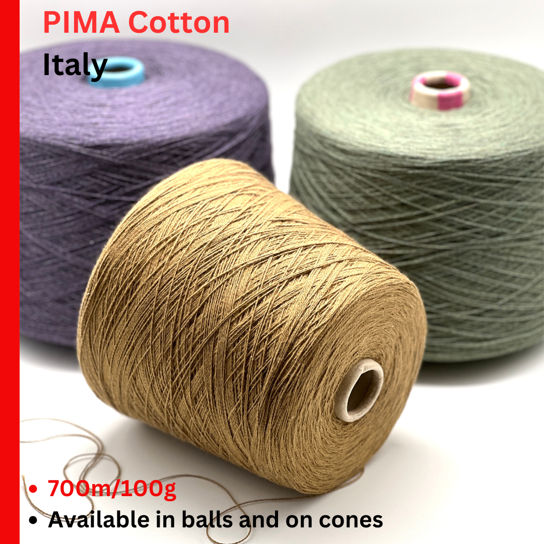 Cotton 100% Yarn, PIMA, Luxury Italian Yarn by IAFIL SPA, Sold in Balls or on Cone, Lace Weight - 700m/100g