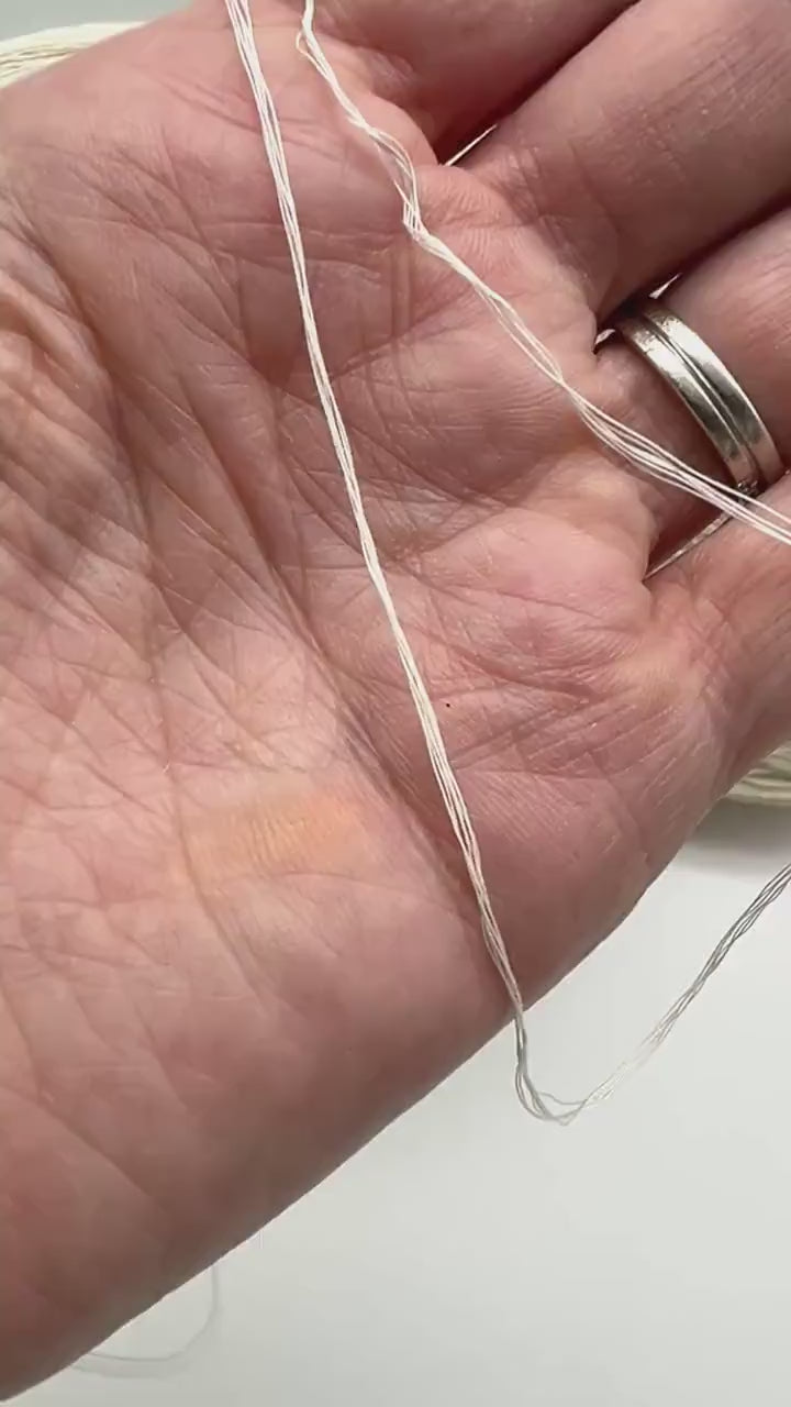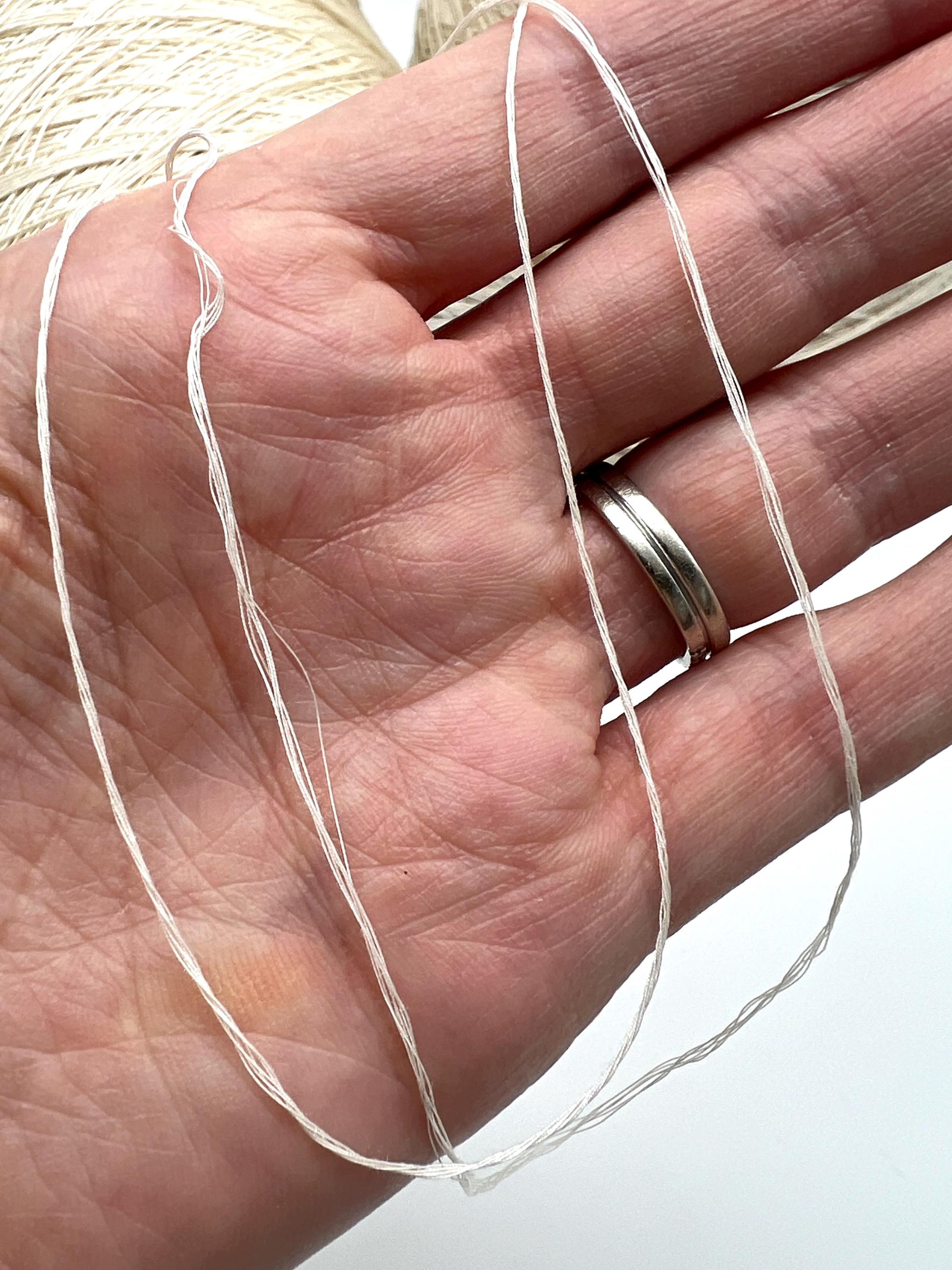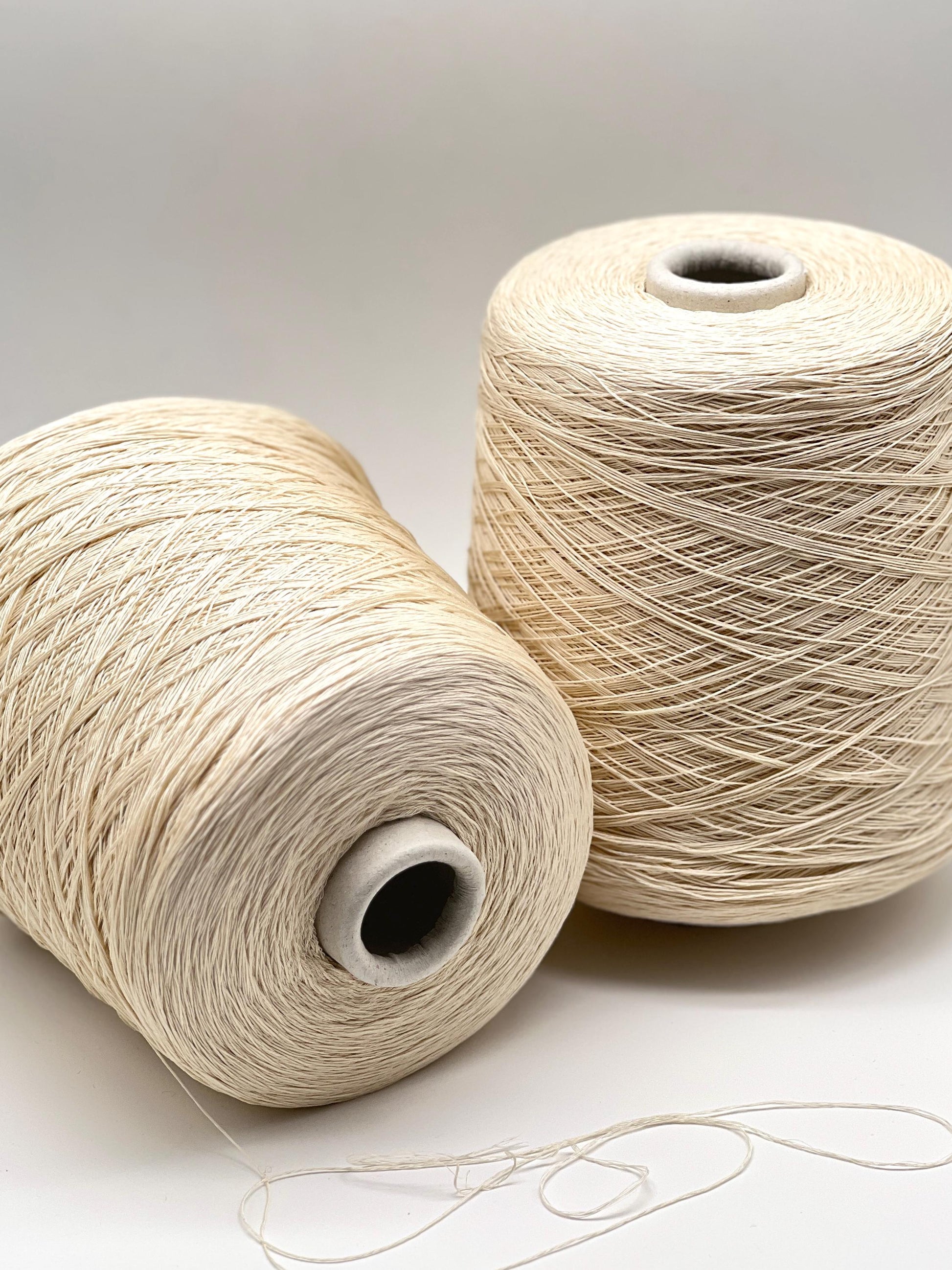 Excellent for both warp and weft in fine weaving. This yarn produces a lightweight, smooth fabric with a beautiful matte sheen and natural softness. Perfect for scarves, wraps, and softly draping textiles. Its strength and finish also make it a great candidate for layered woven pieces.