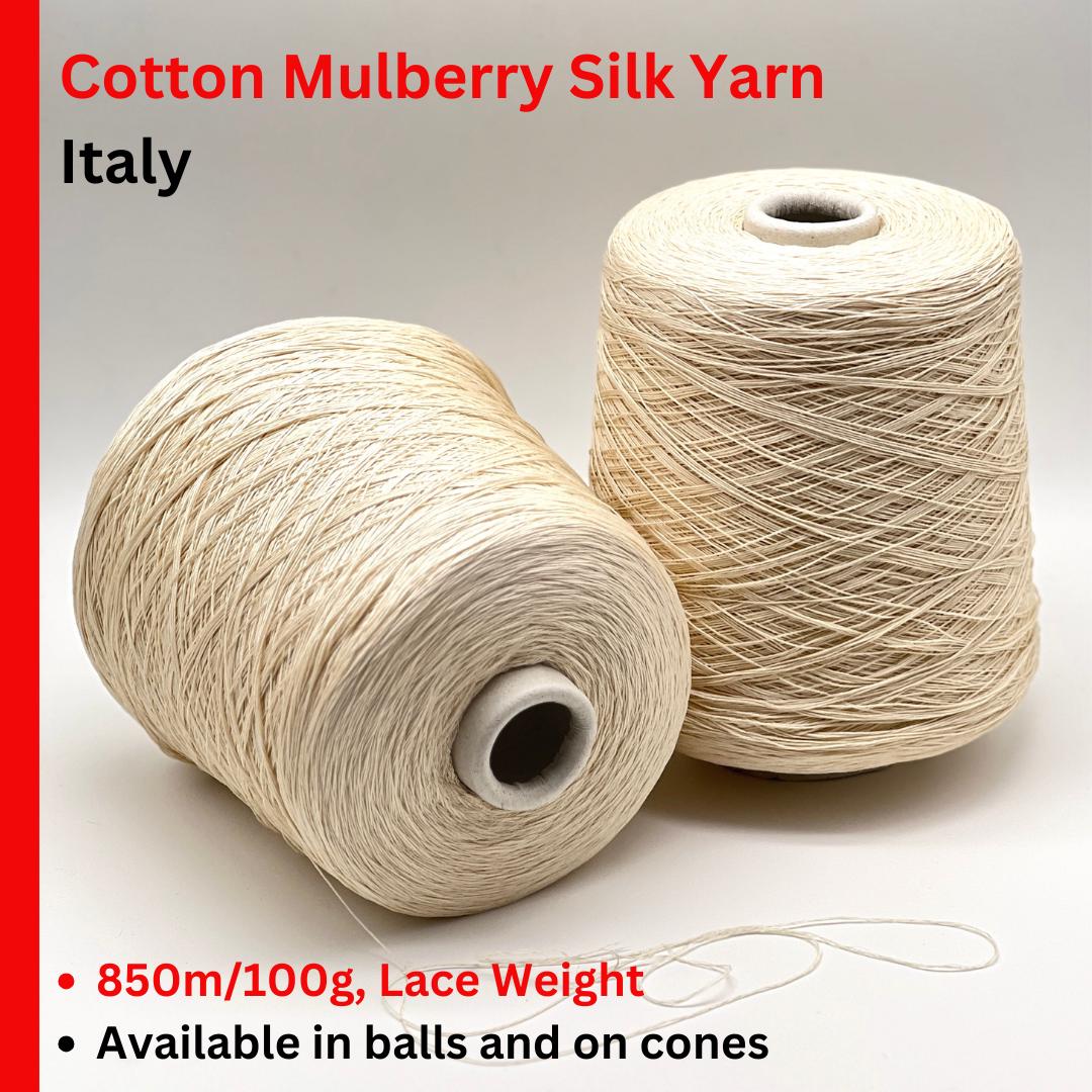 Cotton Mulberry Silk Yarn, COSEX, Luxury Italian Yarn by RiGo, Sold in Balls or on Cones, Lace Weight - 850m/100g