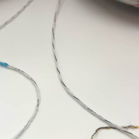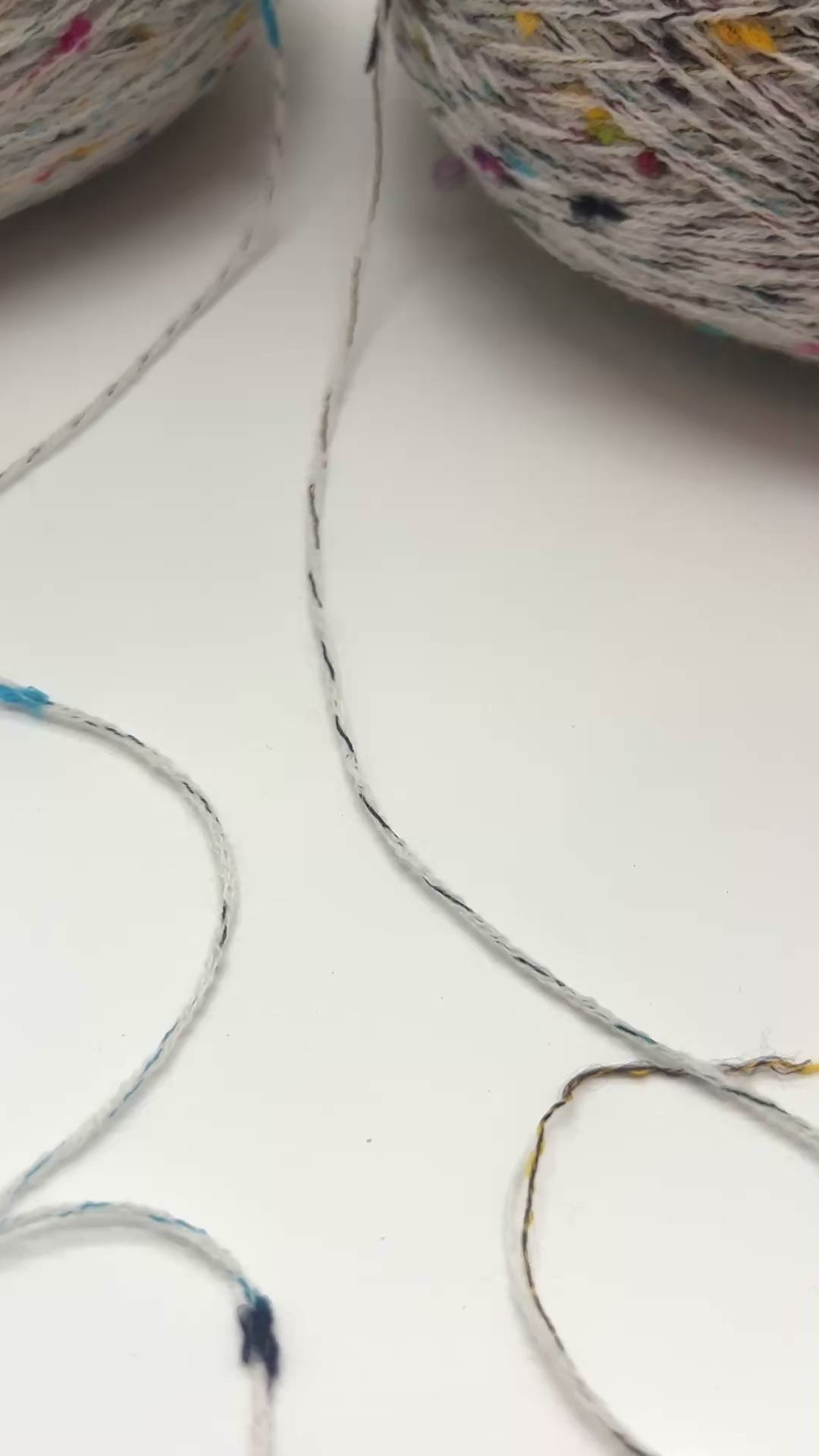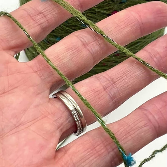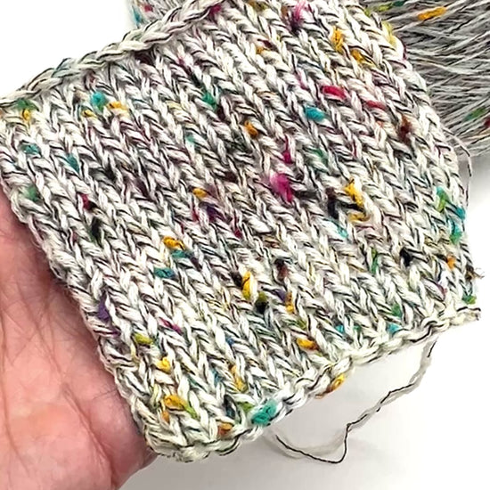 • Thread Structure: Knitted cable core filled with Merino and Mohair fibers, wrapped with an additional Mohair thread and subtle multicolor tweed nubs every 5–6 inches