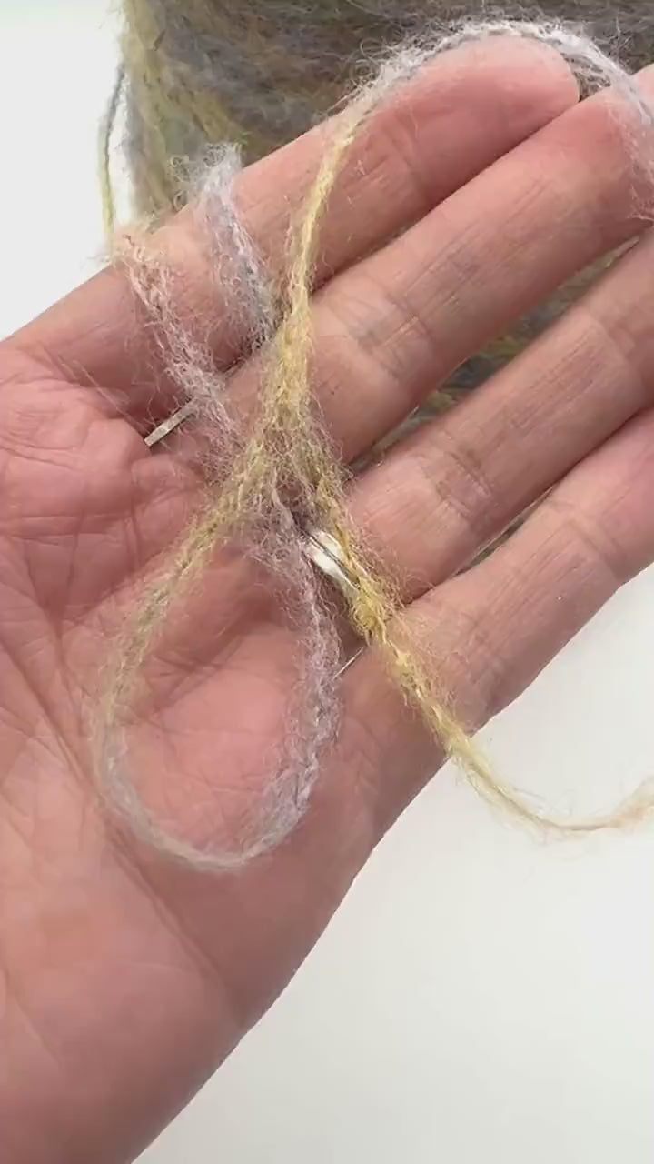 ⢠This yarn works beautifully when held with other strands to create a different weight.