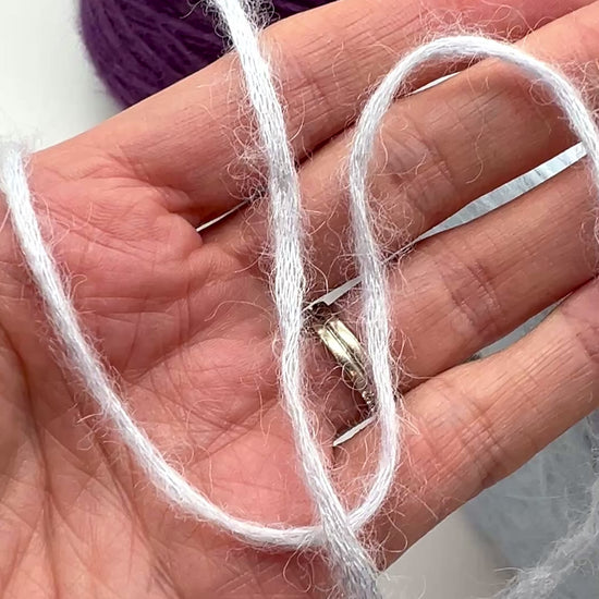 Exceptionally soft, lightweight, and cloud-like — this yarn feels luxuriously gentle against the skin. The thread is a knitted silk-based cord filled with baby alpaca, giving it both airiness and structure. Because of its corded construction, the yarn behaves fuller than the yardage suggests, blooming beautifully after washing and creating a soft, warm, refined finish. Ideal for pieces where you want comfort, elegance, and lightness without bulk.