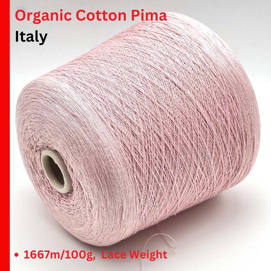 Organic Cotton Yarn, PIMA 12, Premium Italian Yarn by IAFIL SPA, Available in Balls or Cones, Lace Weight, 1667m/100g (1823y/3.52oz)