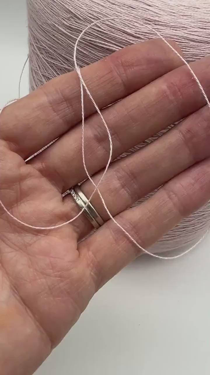 A rare luxury yarn with luminous softness ✨ – Italian-made from 100% organic Pima cotton, article PIMA 12. With a 3/50 construction, this ultra-fine lace yarn is spun from extra-long staple fibers for superior softness, strength, and durability. A refined choice for multi-strand knitting, machine knitting, and fine weaving.