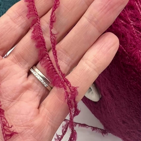 Excellent as a weft yarn for soft, elegant fabrics with sheen. When combined with structural fibers like silk, linen, or wool, it produces refined drapey textiles. Use mainly as weft; for warp applications, combine with a stronger supporting yarn. Sett: 10–12 EPI for soft, glow-enhanced fabrics.