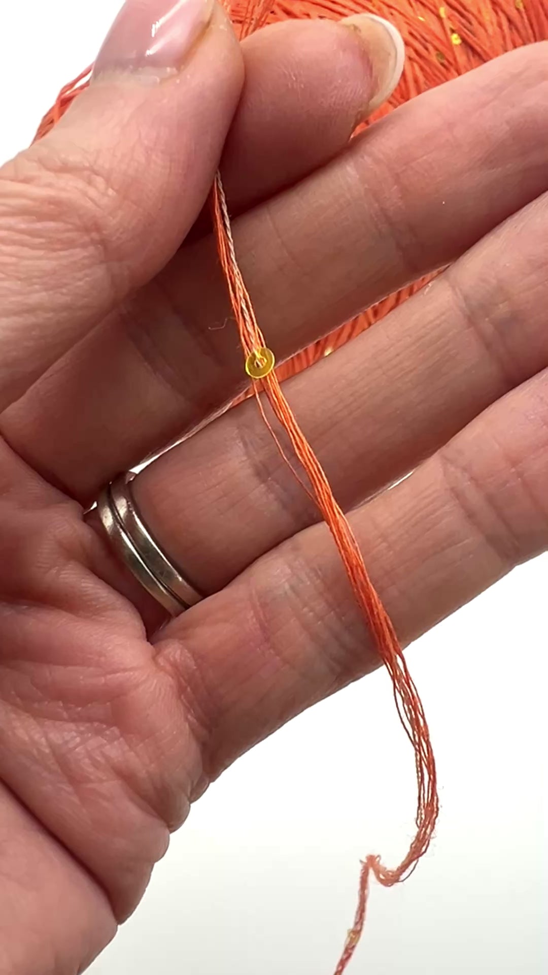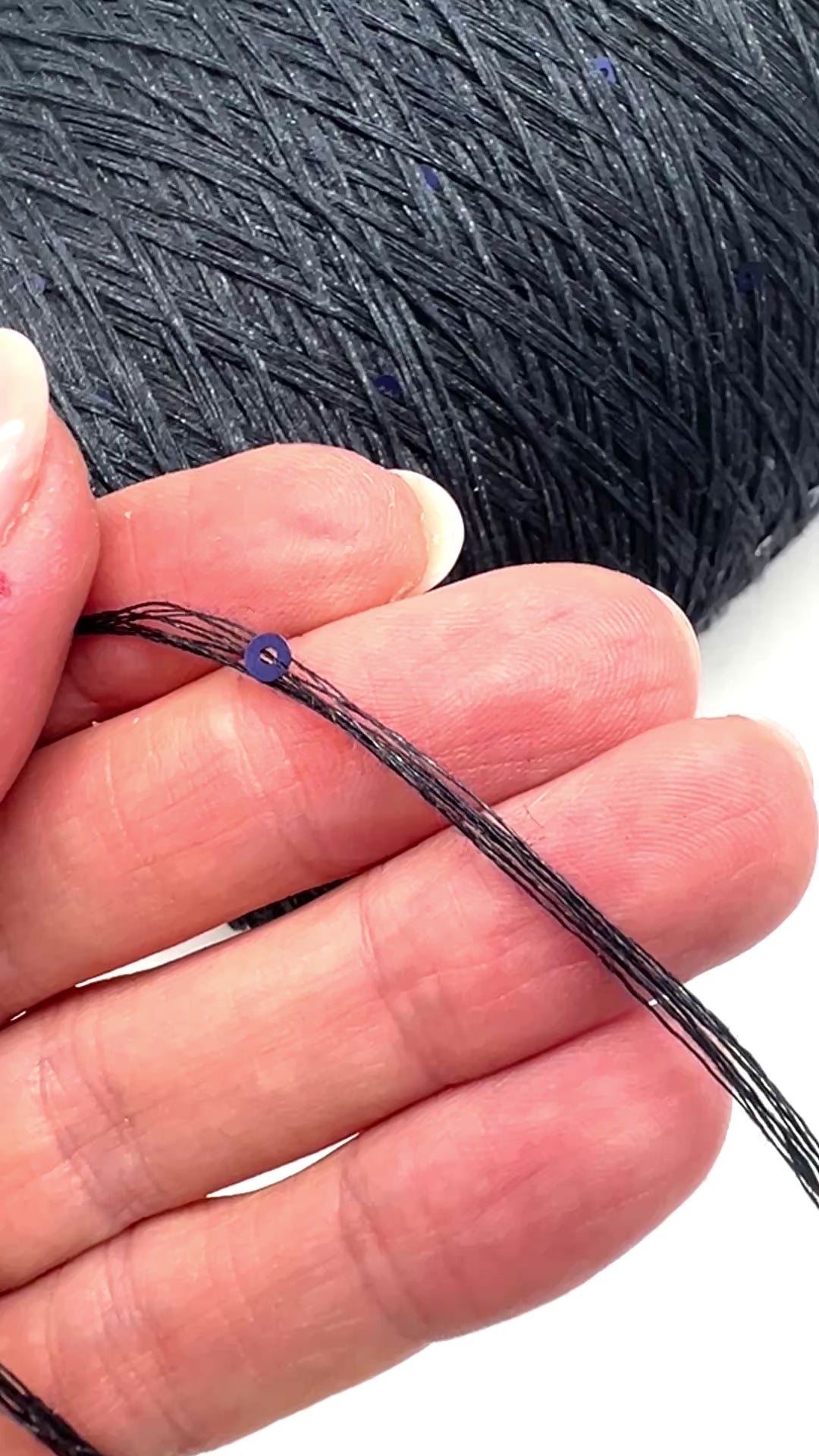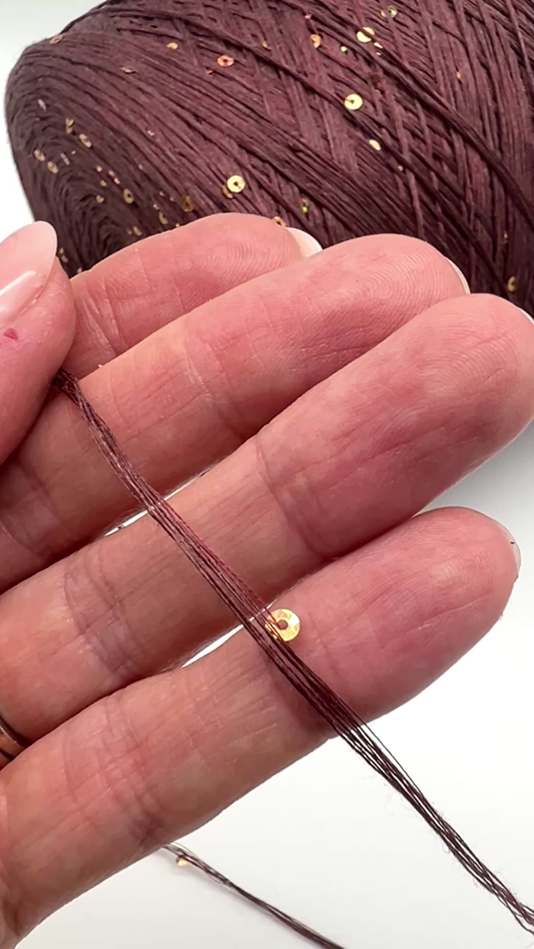 This yarn shines best when paired with simple stitch patterns, allowing the sequins to sparkle naturally. It can also be held together with another yarn (silk, mohair, cotton) to add softness and body while keeping the shimmer.