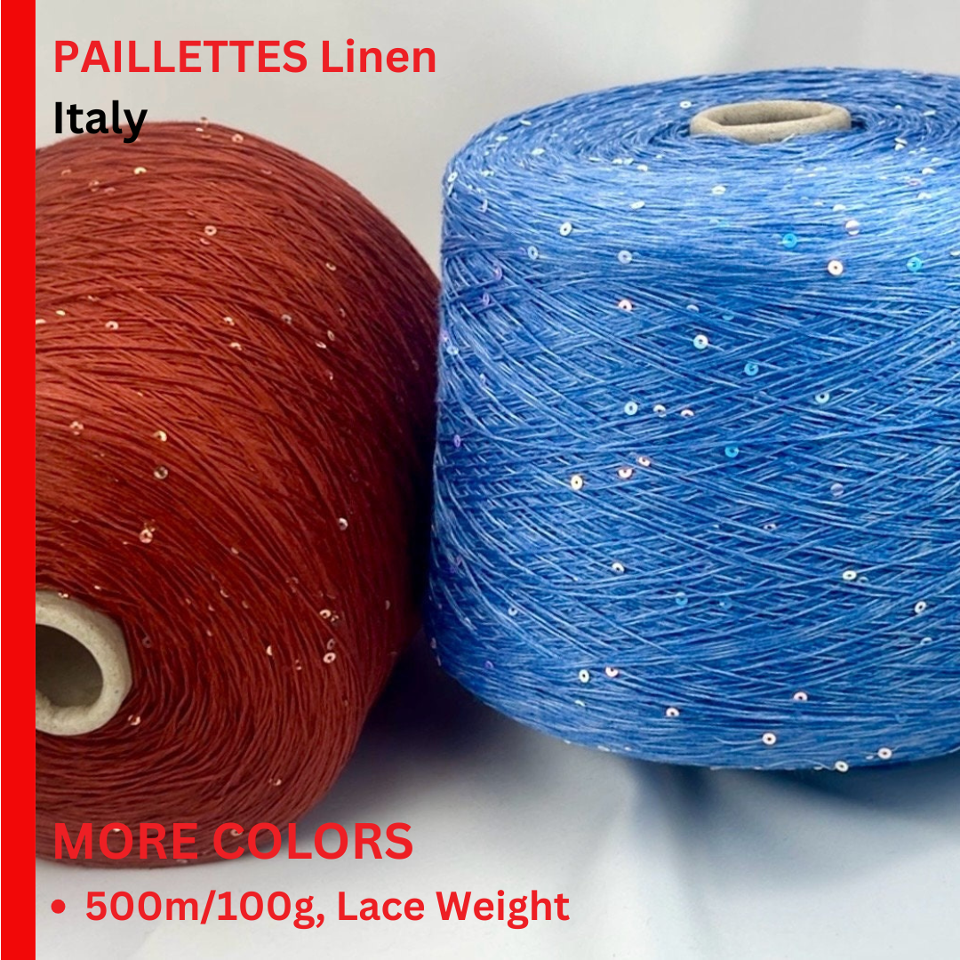 PAILLETTES LINEN Yarn, Sparkling Yarn, Premium Italian Yarn by G&G Filati, Lace Weight, 500m/100g (546y/3.52oz)