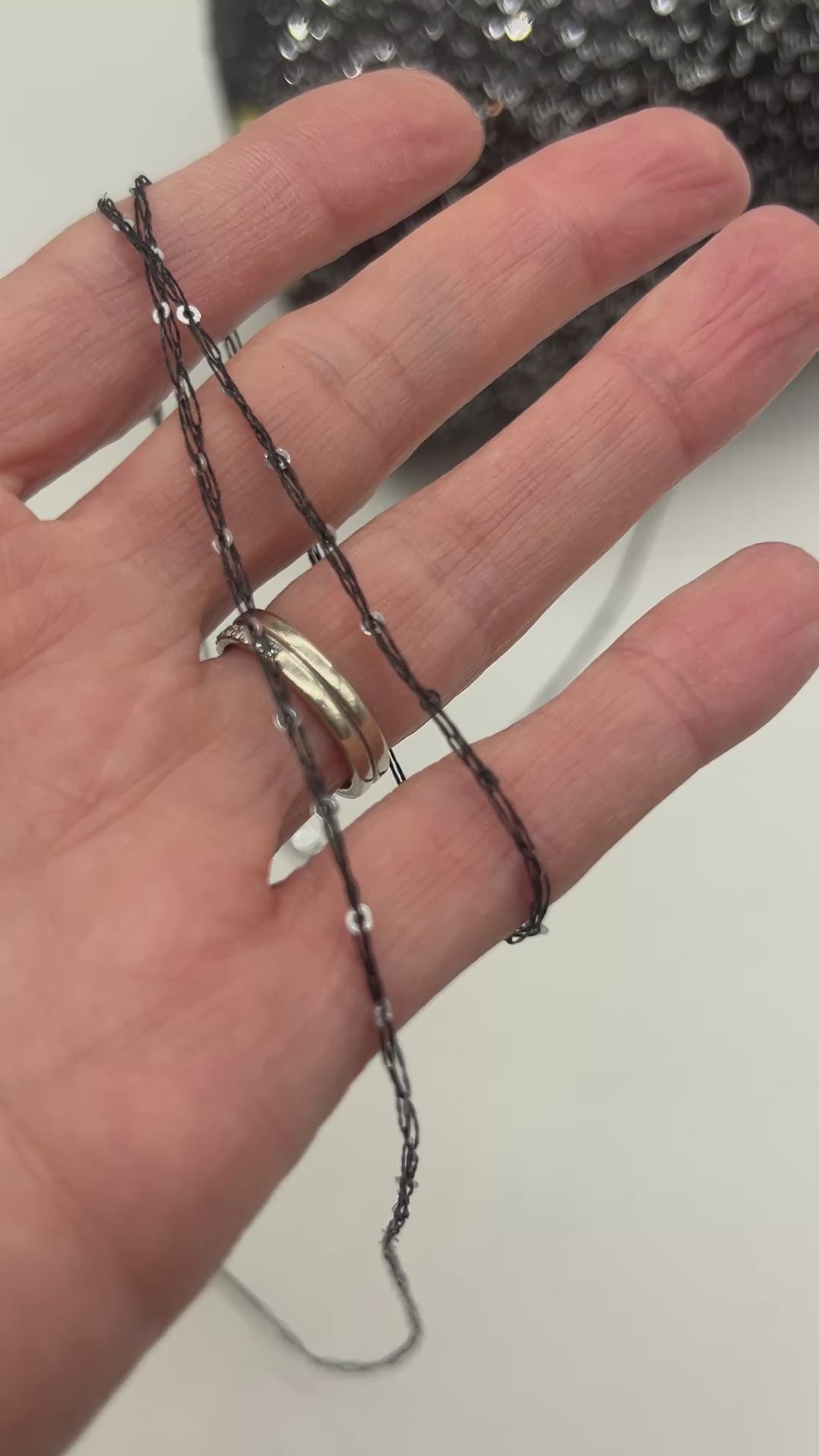 The thread glides smoothly on needles and hooks, making it easy to knit or crochet even in a single strand. Extremely shiny. Elegant on its own or transformative when blended — a versatile lace-weight sequin yarn designed for knitters who want controlled sparkle with professional results.