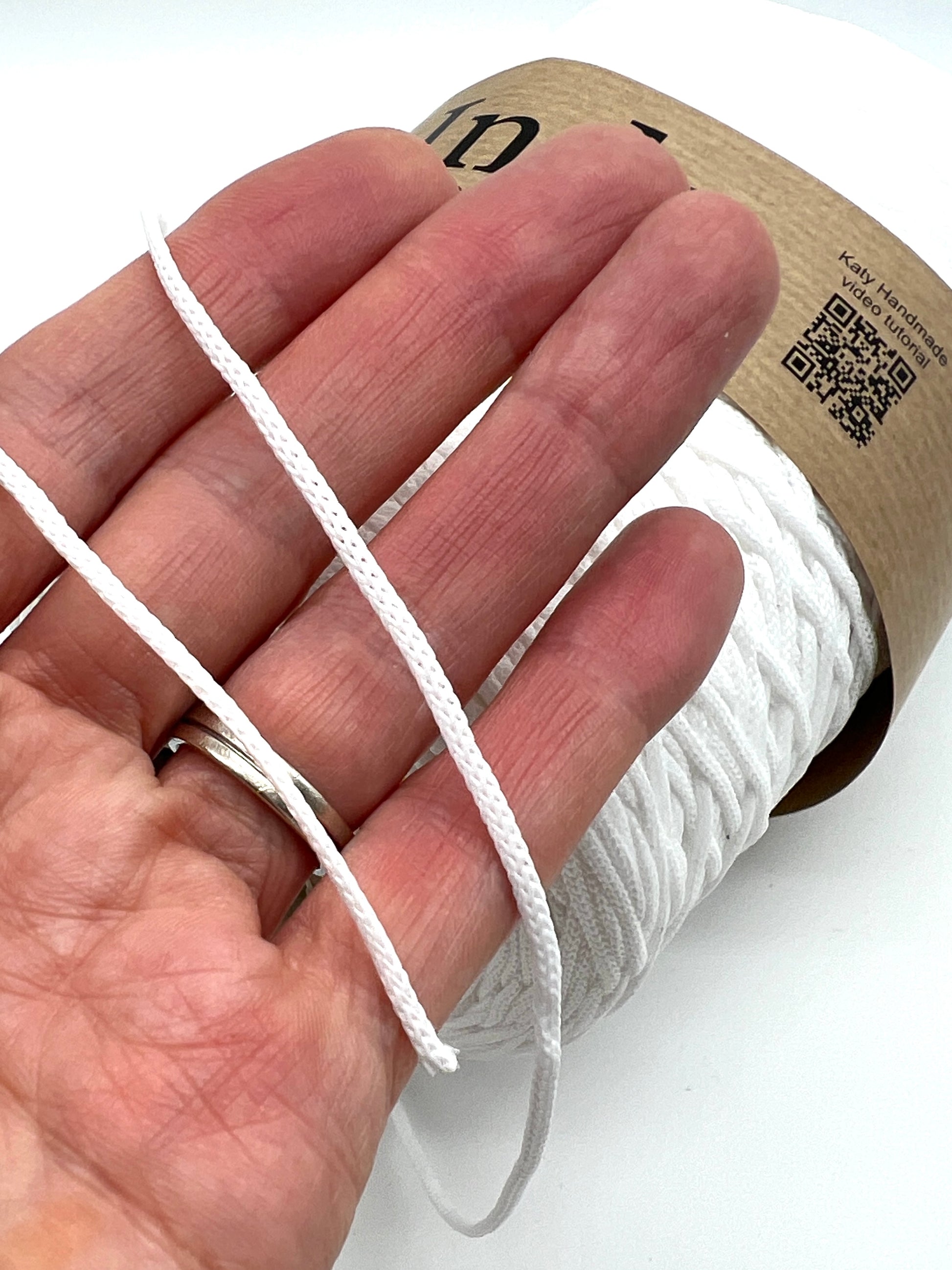 Smooth, lightweight, slightly glossy cord with a soft yet structured feel. Durable and shape-holding. Excellent for utility and decorative use alike.