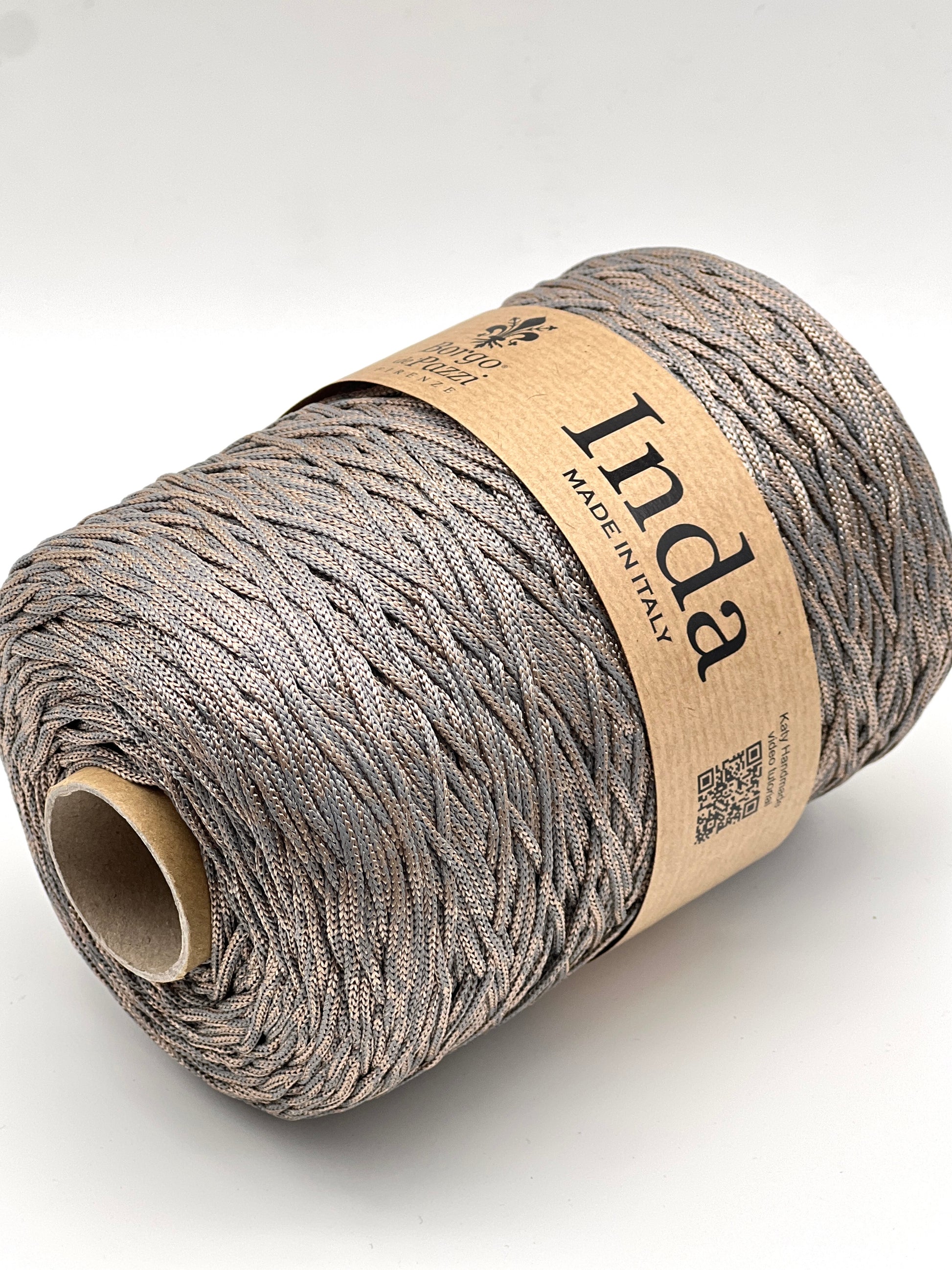 Made in Florence, Italy, INDA is a durable, lightweight yarn with a bold cord-like structure, ideal for accessories that need to hold their shape. Crafted from 100% polypropylene, it’s water-resistant and easy to crochet or knit—perfect for tote bags, baskets, and even outdoor home items. The smooth finish and slight gloss elevate your projects with both form and function.