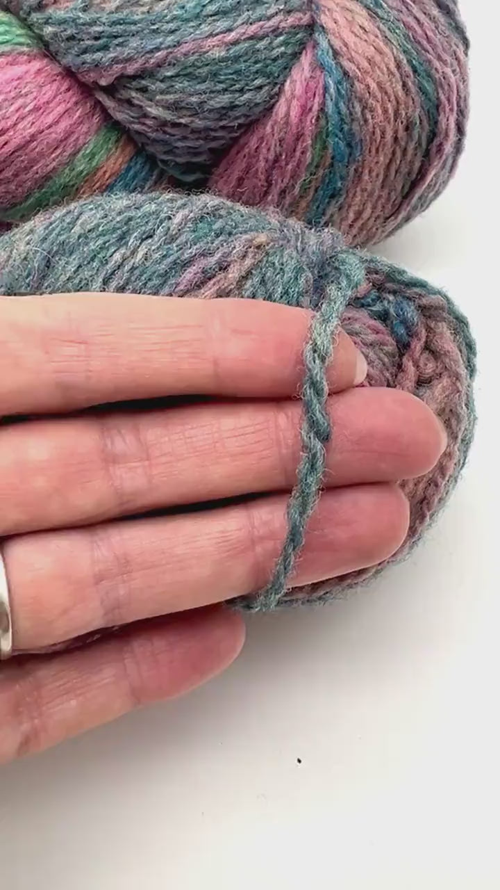 Каждый моток окрашивается вручную небольшими партиями, создавая уникальные, выразительные многоцветные сочетания. Пряжа имеет натуральную, минимально обработанную текстуру — слегка грубоватую на первый взгляд, но с каждой стиркой и ноской становится заметно мягче.