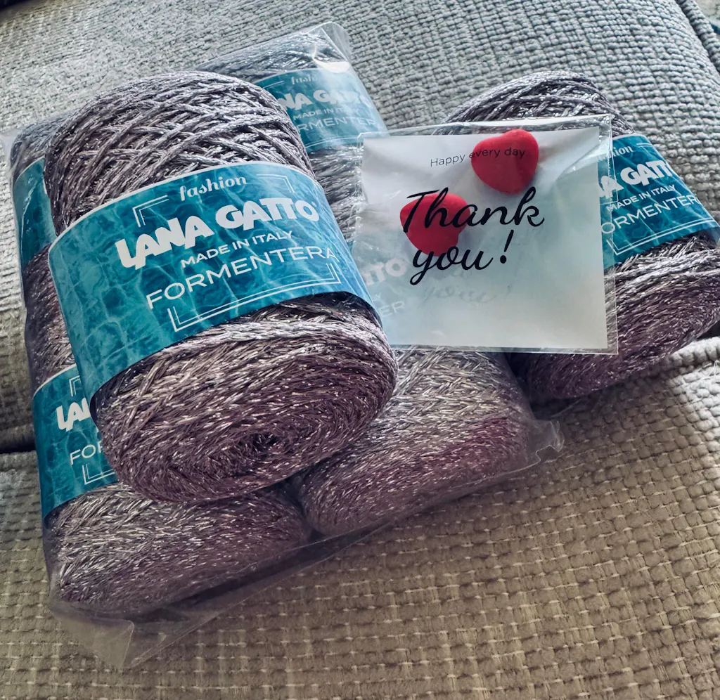 This yarn is so beautiful and sparkly! Color is exactly what I wanted. Also I got cute bonus in package. Thank you Tatyana !