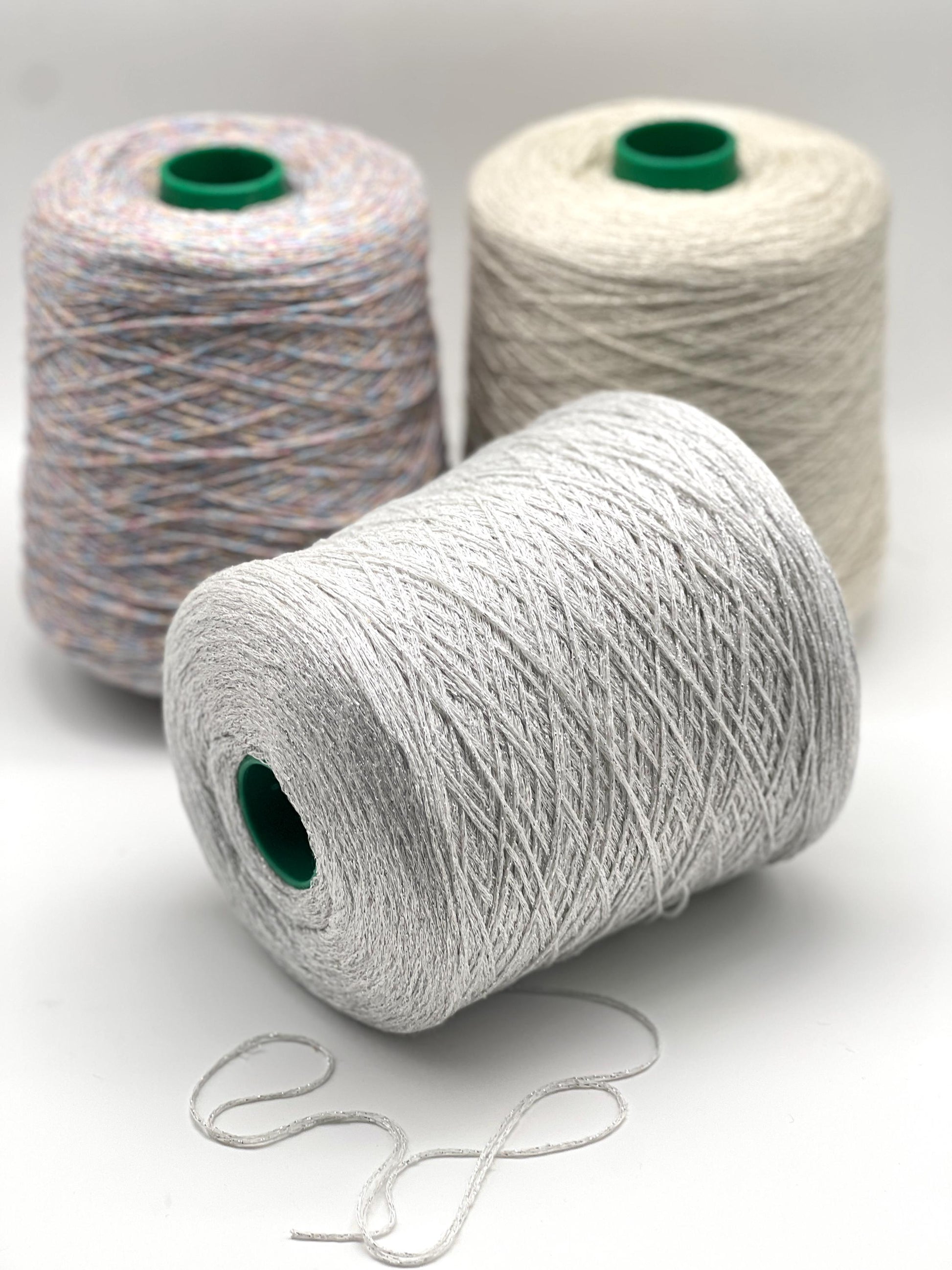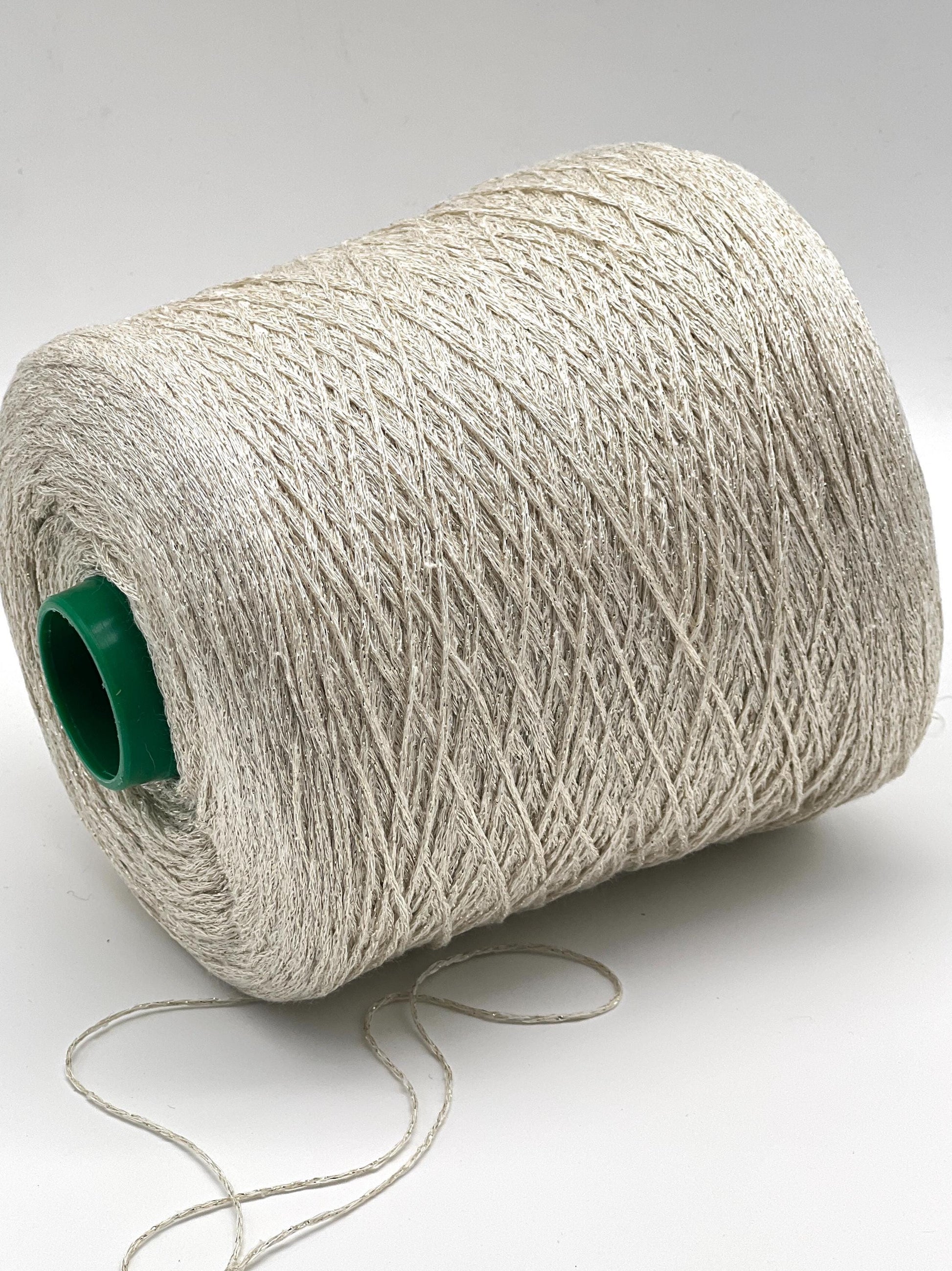📌 Please keep in mind: cone yarns, especially those containing natural fibers or lurex, may include a protective coating used for industrial knitting. A few gentle washes may be needed to allow the yarn to fully bloom and soften.