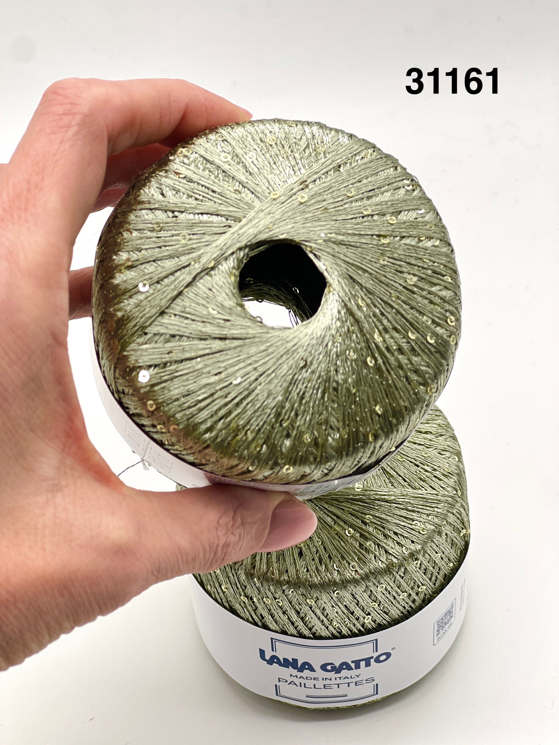 Блестящая итальянская пряжа для вязания с пайетками PAILETTES от Lana Gatto, Италия, ОЧЕНЬ ТОНКАЯ, 195 м/25 г (213 ярдов/0,88 унции)