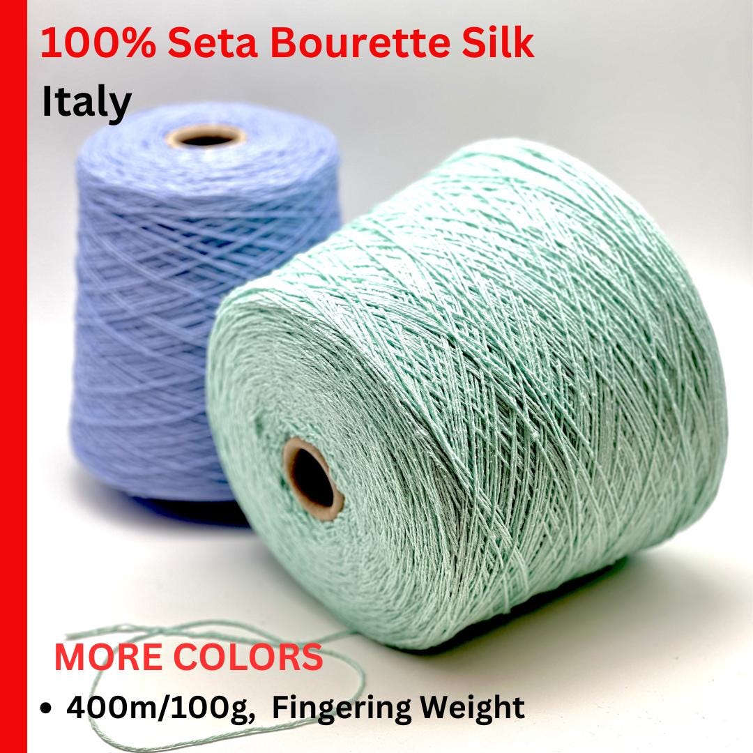 Seta Bourette Silk 100%, Premium Italian Yarn by Filati Buratti, Available in Balls and on Cones, Fingering Weight, 400m/100g (437y)